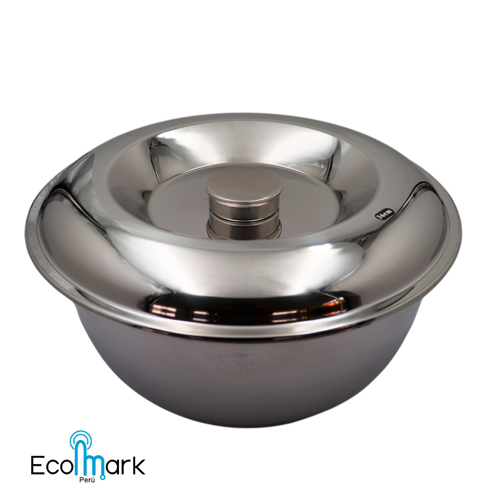 Tazon en acero inoxidable de 36 cm con tapa, ideal para almacenar frutas, ensaladas y alimentos en general conservando toda clase de alimentos, manteniendo los nutrientes, sabores y aromas originales.
