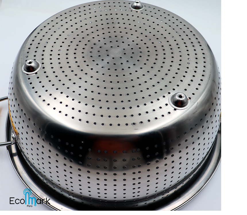 Excelente Acabado, tiene una base que lo ayuda a mantener su estabilidad. Además puedes colar los fideos o lavar todo lo que vayas a cocinar, para asegurar una mejor limpieza de los alimentos.