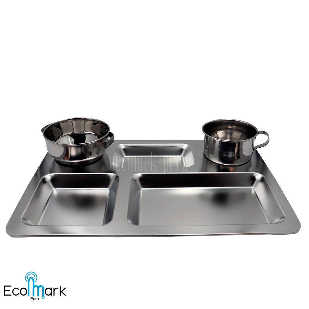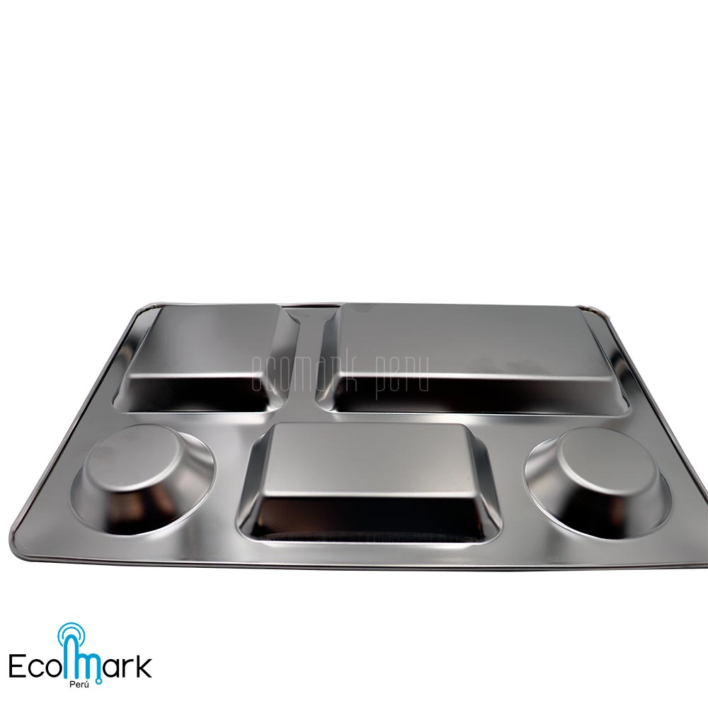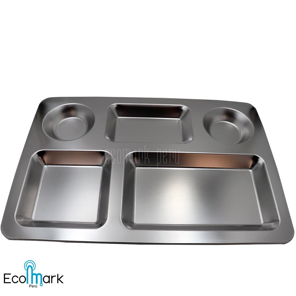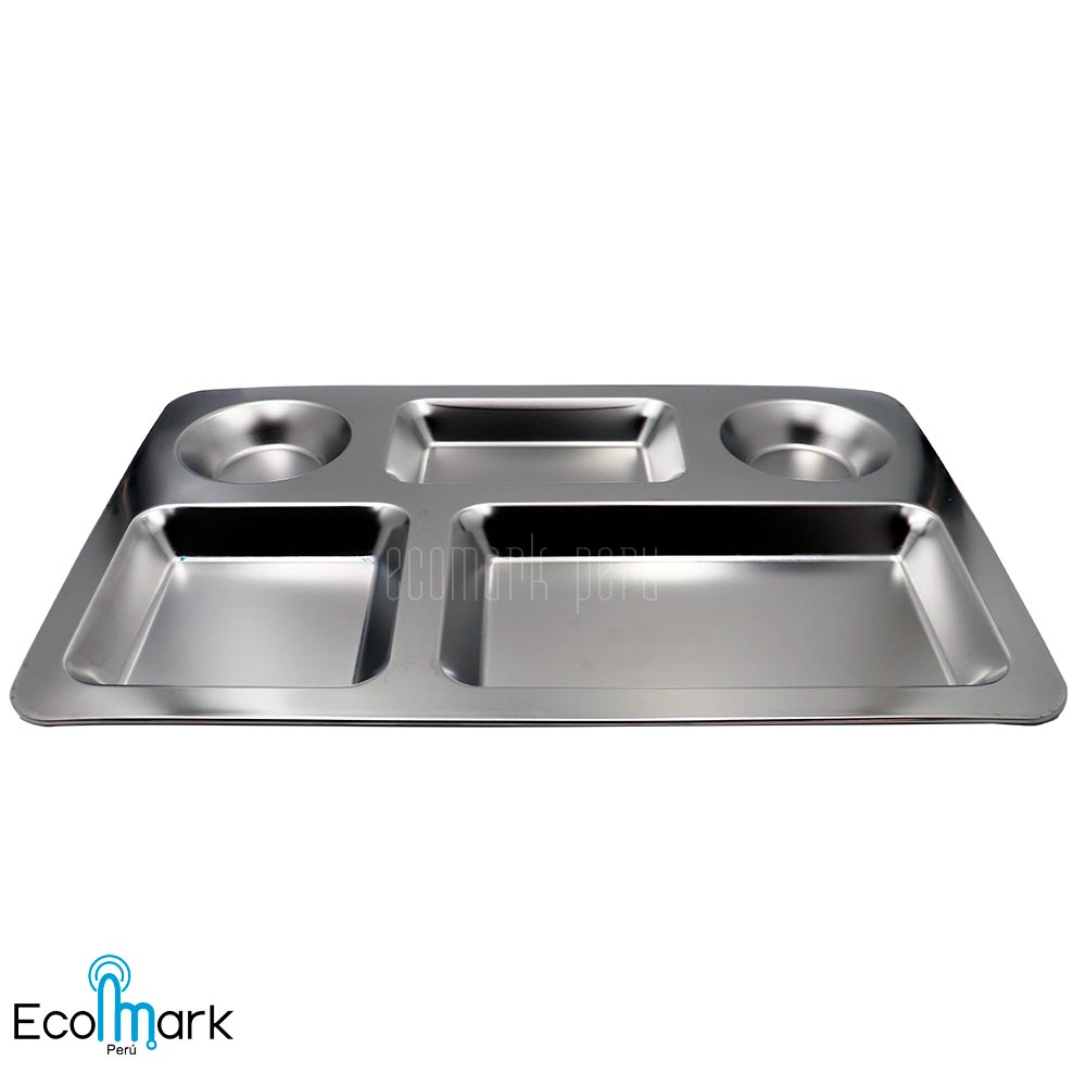 Gamela, charola o fuente de Acero Inoxidable  en alta calidad de 5 divisiones Acabado pulido satinado Externo e Interno ideal para universidades, instituciones que se utiliza como fuente de alimentos.