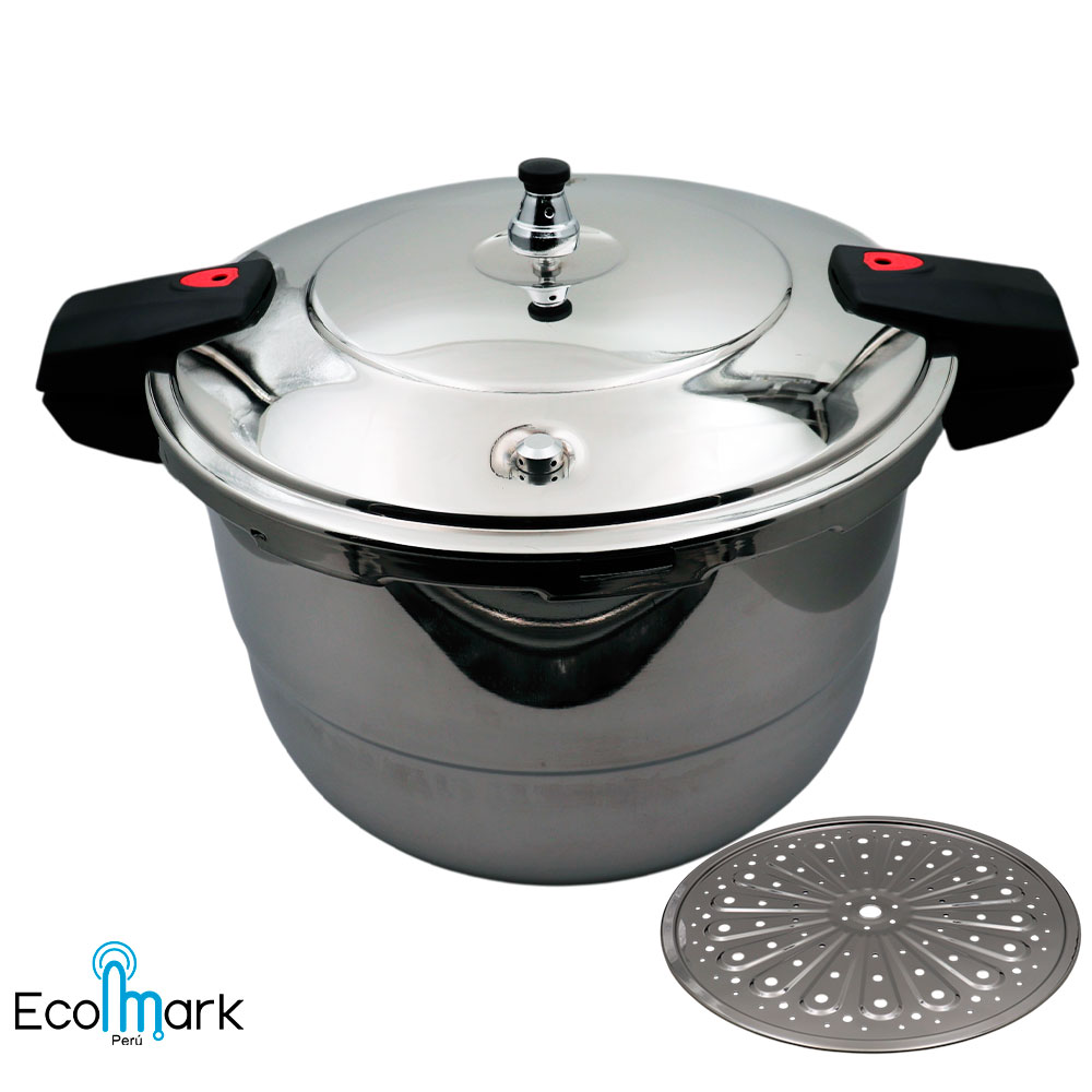 Prepara tus recetas favoritas con la olla a presión en acero quirúrgico 18/10 de gran capacidad de 20 litros, es muy seguro y fácil de usar.