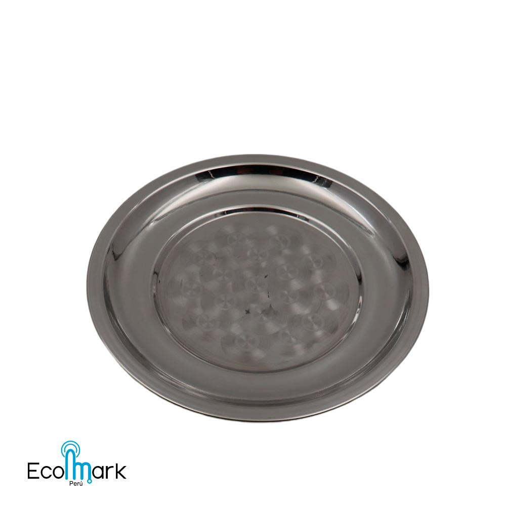 Plato en acero inoxidable 304 en alta calidad de buen espesor, producto en fabricación nacional, ideal para servir diferentes platos de comida.