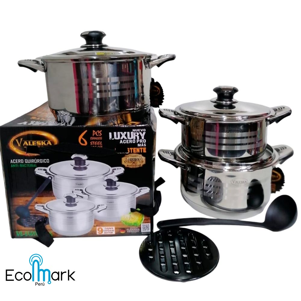 Set de Ollas Acero Inoxidable Quirúrgico Valeska 06pc