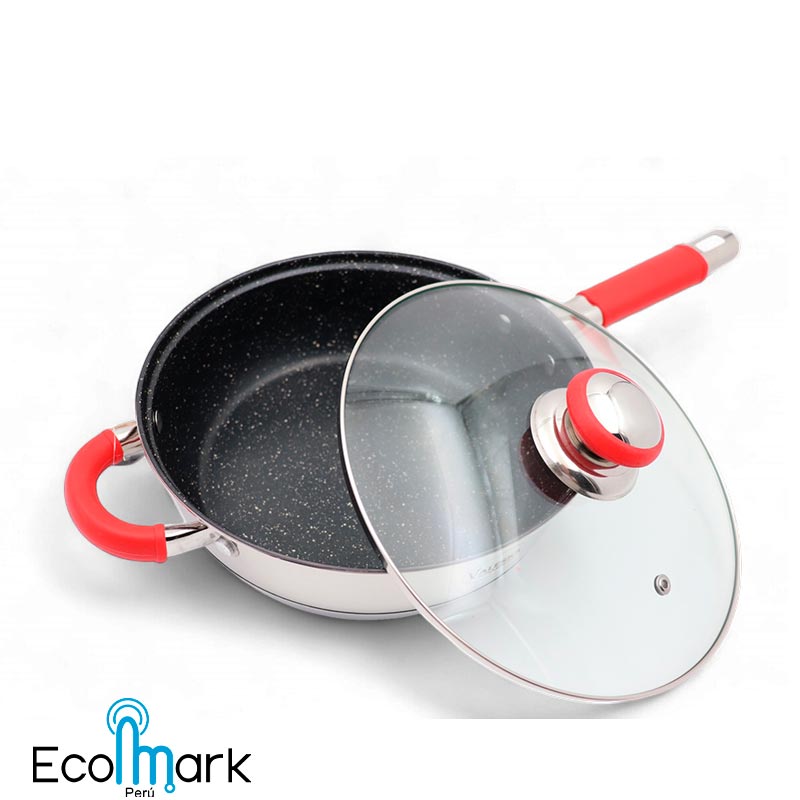 • Sartén antiadherente con tapa 24×7.5 L. (Capacidad de 2 L.)
